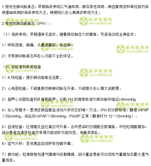 關(guān)于臨床執(zhí)業(yè)醫(yī)師《呼吸系統(tǒng)》:肺動脈高壓的臨床表現(xiàn)及輔助檢查,相關(guān)考點,相信備考2020年臨床執(zhí)業(yè)醫(yī)師考試的考生都在關(guān)注,為方便大家學(xué)習(xí),在此醫(yī)學(xué)教育網(wǎng)小編為大家整理如下內(nèi)容: