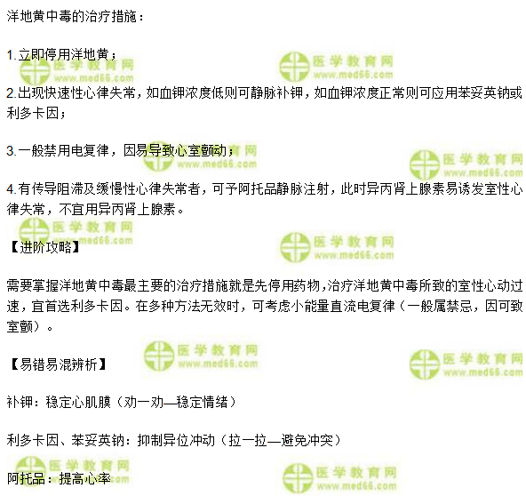 關(guān)于臨床執(zhí)業(yè)《心血管系統(tǒng)》考點:“洋地黃中毒的治療”相關(guān)內(nèi)容,相信參加2020年臨床執(zhí)業(yè)醫(yī)師考試的考生都在關(guān)注,為方便大家備考,在此醫(yī)學(xué)教育網(wǎng)小編為大家整理如下內(nèi)容: