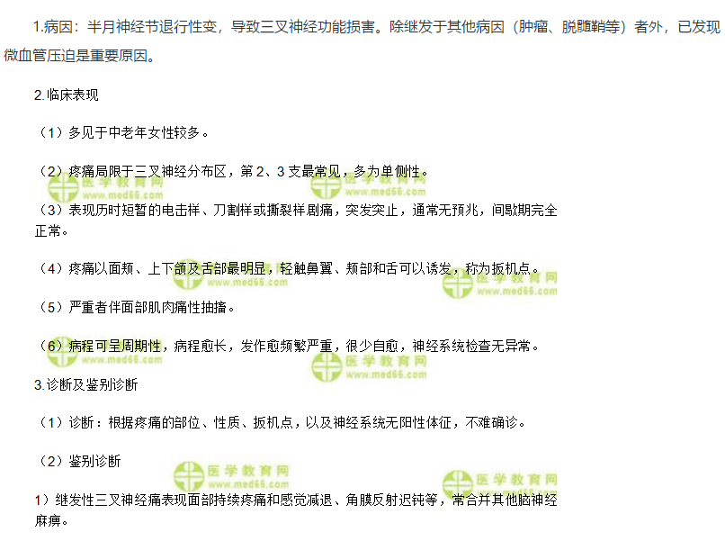 針對(duì)臨床執(zhí)業(yè)醫(yī)師精神神經(jīng)系統(tǒng)中“三叉神經(jīng)痛”相關(guān)考點(diǎn),相信大家都在認(rèn)真學(xué)習(xí),為提高備考效率,在此醫(yī)學(xué)教育網(wǎng)小編為大家整理如下內(nèi)容: