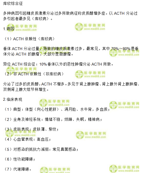 關(guān)于“臨床執(zhí)業(yè)醫(yī)師《代謝、內(nèi)分泌系統(tǒng)》考點(diǎn):庫欣綜合征”相關(guān)內(nèi)容,相信參加臨床執(zhí)業(yè)醫(yī)師考試的考生都在關(guān)注, 為方便大家學(xué)習(xí),在此醫(yī)學(xué)教育網(wǎng)小編為大家整理如下內(nèi)容:
