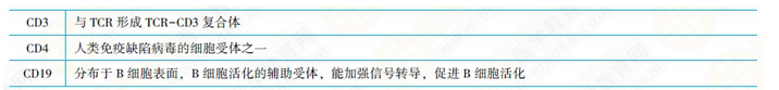 (3)CD4為CD4+T細胞TCR-CD3識別外源性抗原的輔助受體,參與信號轉導。CD4分子也是人類免疫缺陷病毒(HIV)的細胞受體。