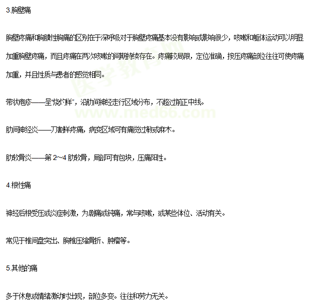 關于“臨床執(zhí)業(yè)外科學實踐綜合-胸痛的常見考點”相關內(nèi)容,相信參加臨床執(zhí)業(yè)醫(yī)師考試的考生都在關注,為方便大家了解,在此醫(yī)學教育網(wǎng)小編為大家整理如下內(nèi)容: