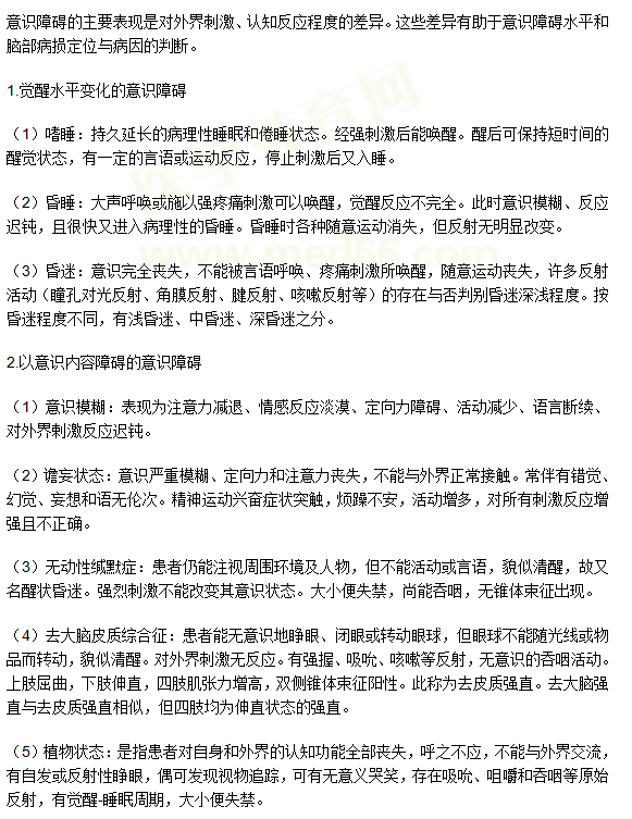 關(guān)于“臨床執(zhí)業(yè)醫(yī)師《實(shí)踐綜合》考點(diǎn)—意識(shí)障礙臨床特點(diǎn)”相關(guān)內(nèi)容,相信參加臨床執(zhí)業(yè)醫(yī)師考試的考生都在關(guān)注,為方便大家了解,在此醫(yī)學(xué)教育網(wǎng)小編為大家整理如下內(nèi)容: