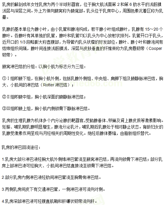 關于“臨床執(zhí)業(yè)醫(yī)師“其他”考點:乳房解剖、生理”相關內容,相信參加臨床執(zhí)業(yè)醫(yī)師考試的考生都在關注,為方便大家了解,在此醫(yī)學教育網小編為大家整理如下內容: