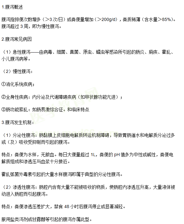 關(guān)于“臨床執(zhí)業(yè)醫(yī)師實(shí)踐綜合考點(diǎn):腹瀉”相關(guān)內(nèi)容,相信參加臨床執(zhí)業(yè)醫(yī)師考試的考生都在關(guān)注,為方便大家了解,在此醫(yī)學(xué)教育網(wǎng)小編為大家整理如下內(nèi)容: