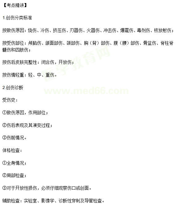 - · 創(chuàng)傷的診斷及創(chuàng)口的判斷-臨床執(zhí)業(yè)醫(yī)師考點