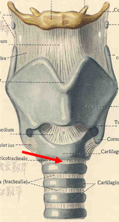 連結(jié)于環(huán)狀軟骨下緣與第1氣管軟骨環(huán)之間