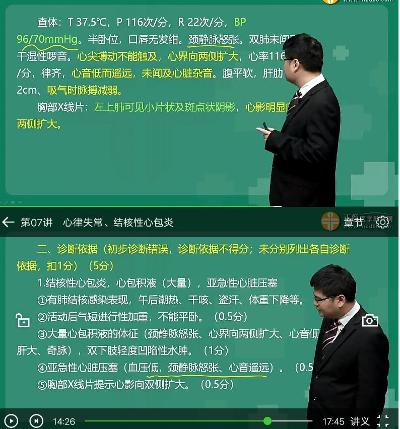 以上關于“結核性心包炎病例分析診斷公式及理想血壓值時什么?考生速記!”的文章由醫(yī)學教育網(wǎng)編輯整理搜集,希望可以幫助到大家,更多的文章隨時關注醫(yī)學教育網(wǎng)!