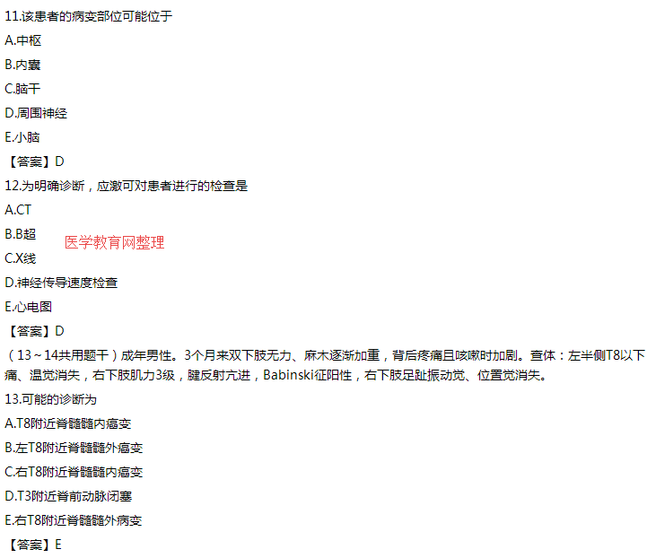 關(guān)于“2020年臨床執(zhí)業(yè)醫(yī)師醫(yī)學(xué)綜合筆試考試精神神經(jīng)系統(tǒng)模模擬試題練習(xí)第二期”的內(nèi)容,相信很多考生都在關(guān)注,醫(yī)學(xué)教育網(wǎng)老師為大家整理總結(jié)了具體的模擬試題,供大家學(xué)習(xí),預(yù)祝各位考試順利: