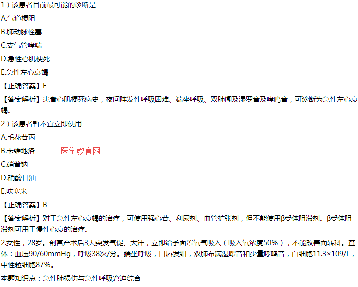 本題知識(shí)點(diǎn):心力衰竭-急性左心衰竭
