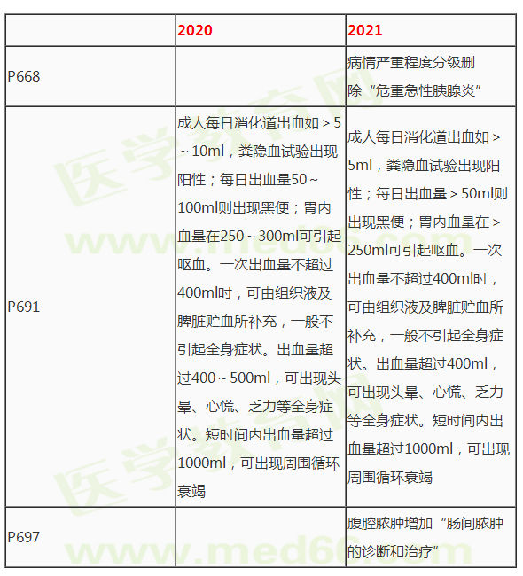 消化系統(tǒng)科目在消化道出血和腹腔膿腫兩個知識點有修訂:
