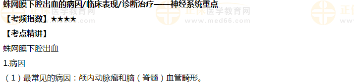 蛛網(wǎng)膜下腔出血的病因/臨床表現(xiàn)/診斷治療——神經(jīng)系統(tǒng)重點(diǎn)