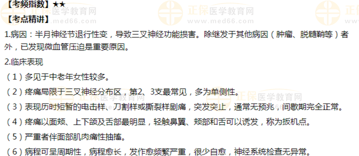2021年臨床執(zhí)業(yè)醫(yī)師考點——三叉神經(jīng)痛的知識小結(jié)(附題)