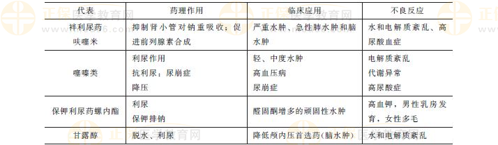 需要了解各類利尿藥物的臨床應(yīng)用,不同程度的水腫利尿藥物甄選不同,另外需要掌握其不良反應(yīng)。