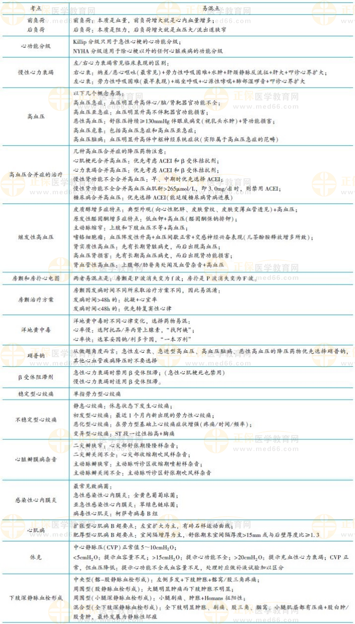 臨床執(zhí)業(yè)醫(yī)師考試——心血管系統(tǒng)科目重點(diǎn)歸納、易錯(cuò)點(diǎn)總結(jié)(圖表)