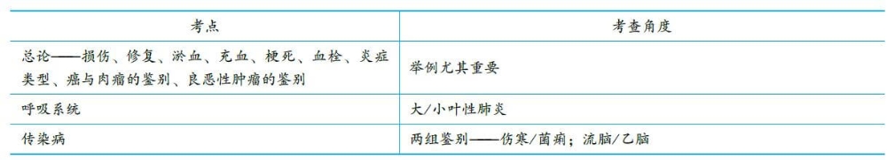 3.“鑒別” 比如:泌尿系統(tǒng)各種腎小球腎炎的鑒別,幾乎每年必考。此外還有——紅白血栓、干濕性壞疽、出血/貧血性梗死、肉芽腫/肉芽組織、良惡性腫瘤、癌與肉瘤、大/小葉性肺炎、乙腦和流腦、菌痢和傷寒等等。