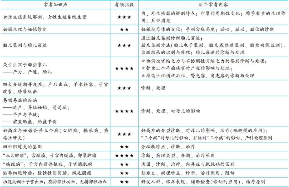 婦產(chǎn)科的高頻考點(diǎn)見(jiàn)下表,請(qǐng)注意,下表并未按章節(jié)排序,而是單獨(dú)將它們摘出來(lái),以提醒大家擒賊先擒王。