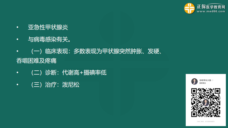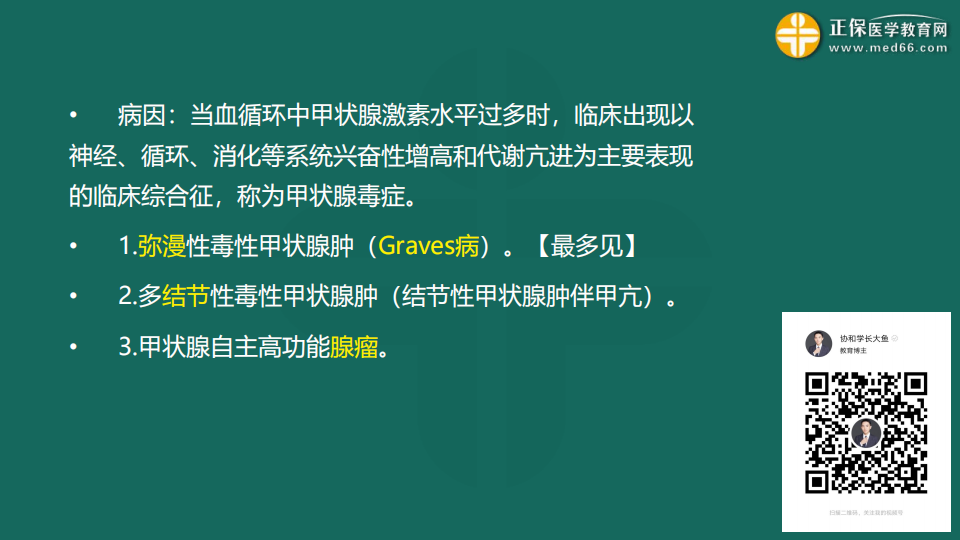 以上就是醫(yī)學(xué)教育網(wǎng)關(guān)于“甲狀腺功能亢進(jìn)癥復(fù)習(xí)資料——臨床醫(yī)師二試考點(diǎn)”的相關(guān)介紹,希望能夠幫助到大家,更多干貨盡在醫(yī)學(xué)教育網(wǎng)!