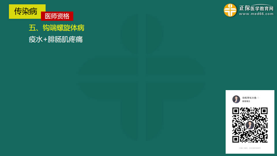 以上就是醫(yī)學(xué)教育網(wǎng)關(guān)于“鉤端螺旋體病——臨床執(zhí)業(yè)醫(yī)師二試傳染病考試資料”的相關(guān)介紹,希望能夠幫助到大家,更多干貨盡在醫(yī)學(xué)教育網(wǎng)!