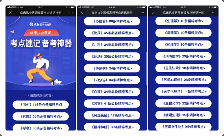 臨床執(zhí)業(yè)醫(yī)師考試各科目考點(diǎn)多,科目雜,工作忙時(shí)間緊,咋整?專(zhuān)治考前沒(méi)時(shí)間!臨床執(zhí)業(yè)醫(yī)師考點(diǎn)速記神器必須擁有!收藏這款速記神器,無(wú)需下載app!打開(kāi)頁(yè)面就能刷考點(diǎn),強(qiáng)刷2022臨床執(zhí)業(yè)醫(yī)師25大科目860個(gè)高頻考點(diǎn)!