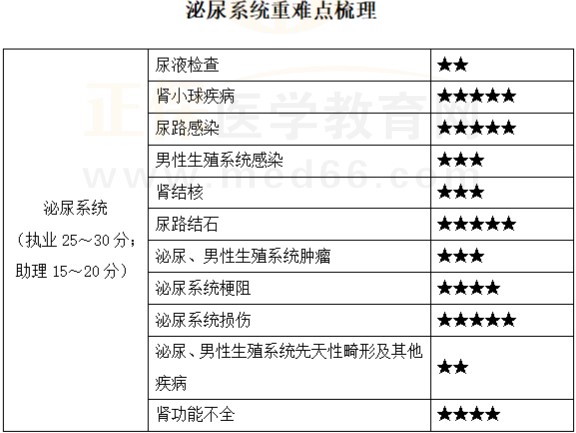 一表查看臨床執(zhí)業(yè)醫(yī)師“泌尿系統(tǒng)”各單元復習重難點