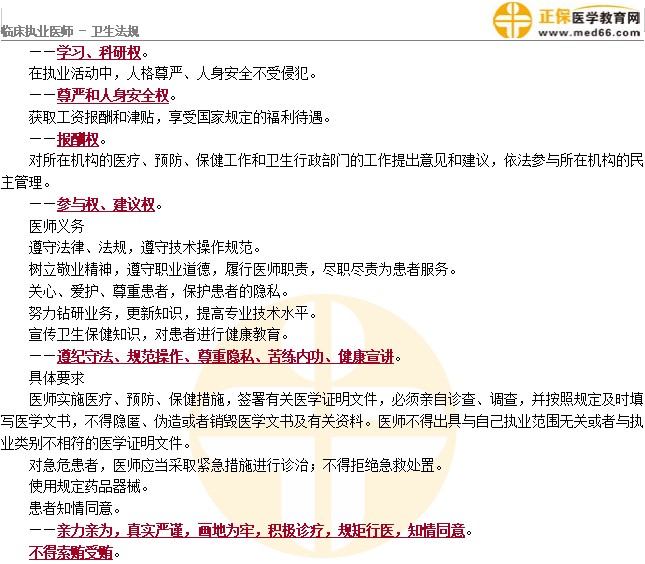 臨床執(zhí)業(yè)醫(yī)師【葉冬講義】醫(yī)師的權(quán)利和義務(wù)考察知識(shí)點(diǎn)
