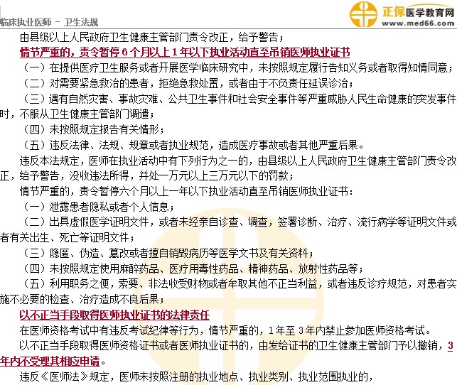 臨床執(zhí)業(yè)醫(yī)師考試2022年衛(wèi)生法規(guī)醫(yī)師法律責任考點講義