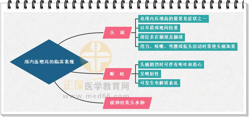 臨床執(zhí)業(yè)醫(yī)師考試各科目緊密關(guān)聯(lián),考點(diǎn)環(huán)環(huán)相扣,一不留神,就容易思維混亂,考點(diǎn)混淆。解決這一問題,最好的辦法就是制作思維導(dǎo)圖,從宏觀上理清知識(shí)要點(diǎn),然后從微觀上查漏補(bǔ)缺。精神神經(jīng)系統(tǒng)“顱內(nèi)壓增高臨床表現(xiàn)”疑難易錯(cuò)考點(diǎn)思維導(dǎo)圖如下。