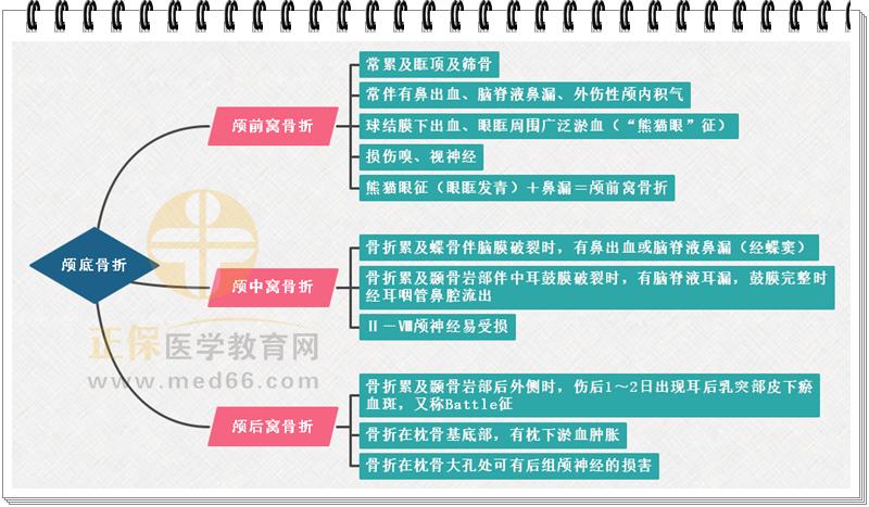 2022年臨床執(zhí)業(yè)醫(yī)師“顱底骨折”歷年重要考點思維導圖