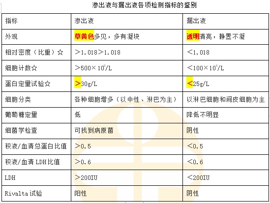 臨床執(zhí)業(yè)醫(yī)師考試呼吸系統(tǒng)——滲出液與漏出液的鑒別(精選考點)