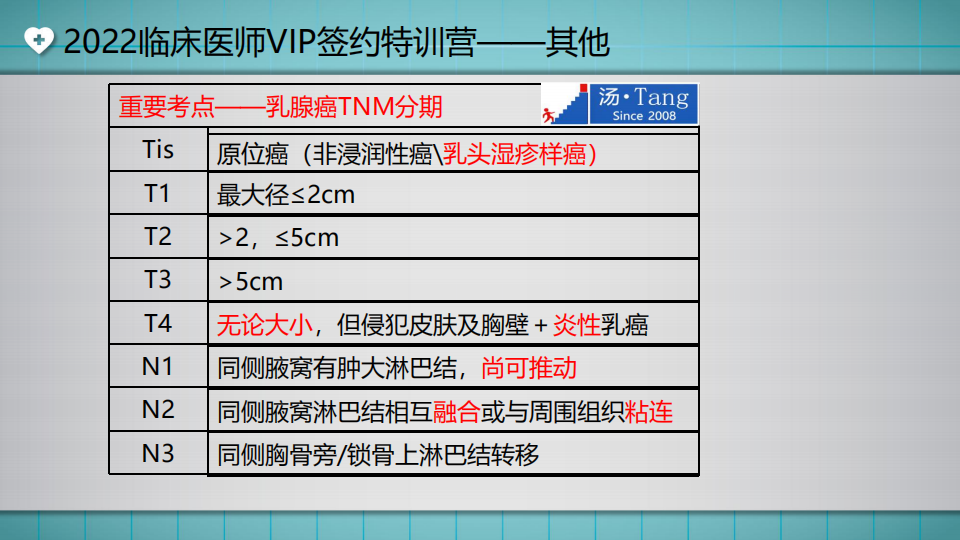 臨床執(zhí)業(yè)醫(yī)師:乳腺癌TNM分期(重要考點,TANG小結)直播講義如下,湯以恒老師4月26日開展了VIP強化特訓公開課,參與直播的同學熱情高漲,都是干貨,全是精髓! 錯過直播的同學可以看直播回放>>,現(xiàn)在將精彩講義內容摘取如下,沒有參加直播的同學,也可以一睹為快啦!