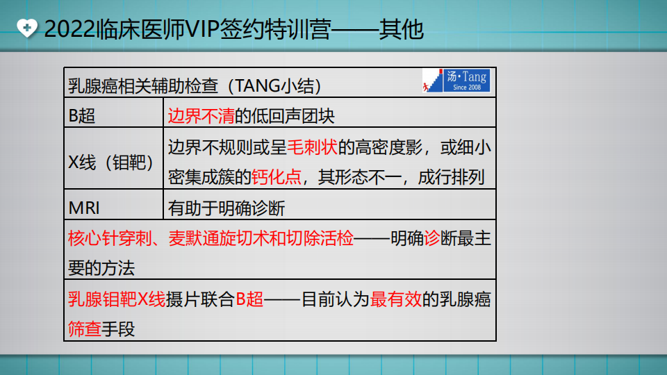 乳腺癌相關(guān)輔助檢查(TANG小結(jié))臨床執(zhí)業(yè)醫(yī)師直播講義