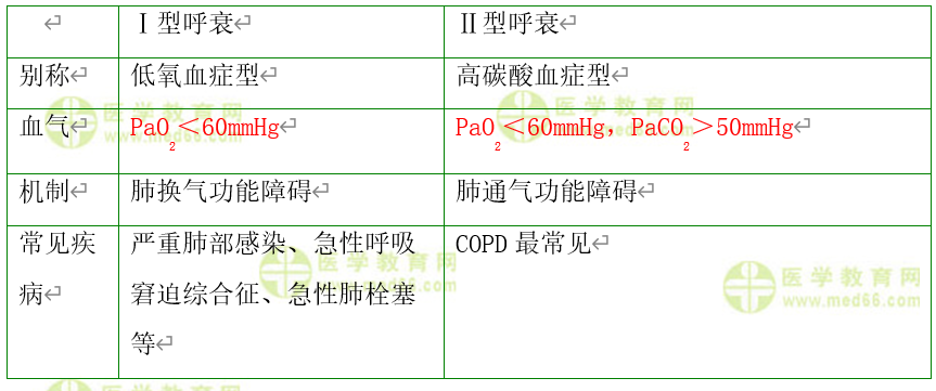 Ⅰ型呼衰與Ⅱ型呼衰的對比——臨床執(zhí)業(yè)醫(yī)師精編考點