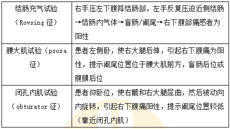 闌尾位置的多變,可以通過幾個(gè)試驗(yàn)來進(jìn)行簡單辨別: