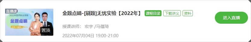 7月4日晚上將開展臨床執(zhí)業(yè)醫(yī)師無憂實驗班、高效定制班金題點睛直播課,金題點睛直播課主旨為學(xué)員剖析解題思路,解鎖做題技巧。