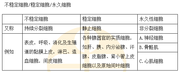 知識點(diǎn)鏈接:不穩(wěn)定細(xì)胞/穩(wěn)定細(xì)胞/永久細(xì)胞
