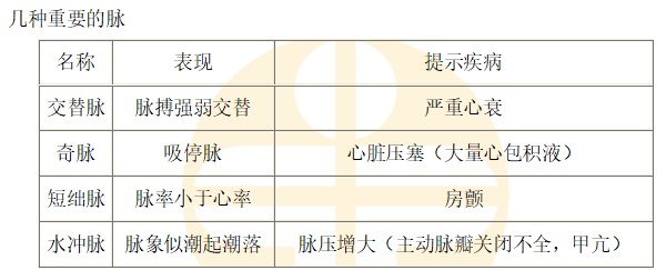 2023臨床執(zhí)業(yè)醫(yī)師每天一個知識點:幾種重要的脈