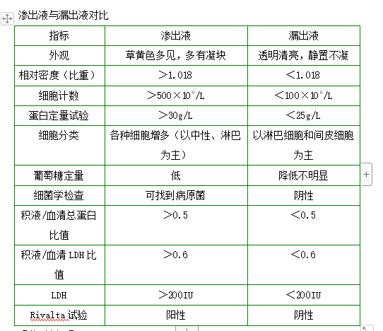 考點:滲出液與漏出液對比