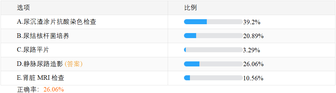 患者,男,29歲。尿頻、尿急、尿痛2年,癥狀加重時(shí)有終末血尿,小便6~10次/日。尿沉渣檢查:膿細(xì)胞(+++),紅細(xì)胞(++)。尿液普通細(xì)菌培養(yǎng)(-)。腹部平片未見明顯異常。