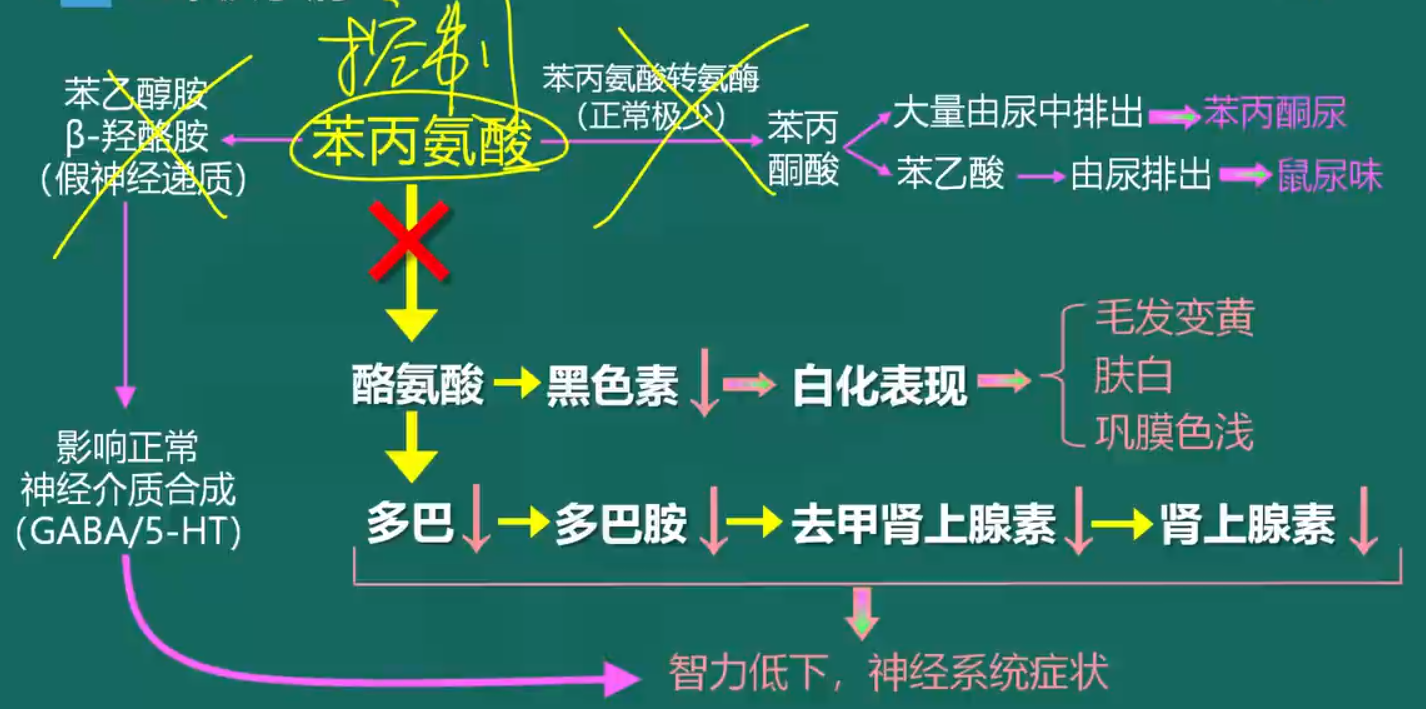 苯丙酮尿癥(PKU)是氨基酸代謝障礙疾病中較常見(jiàn)的一種,屬常染色體隱性遺傳病,是苯丙氨酸代謝途徑中酶缺陷所致的氨基酸代謝病,患兒尿液中排出大量苯丙酮酸。臨床特征為智力低下、癲癇發(fā)作和色素減少。
