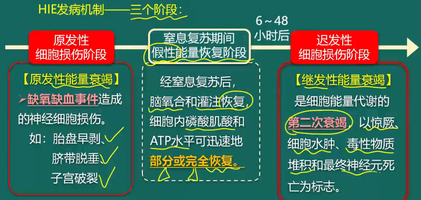 當(dāng)腦的灌注降低嚴(yán)重到足以超過組織從血液中提取氧氣的能力時(shí),缺氧缺血性腦病發(fā)生。產(chǎn)前、產(chǎn)時(shí)和出生后的缺氧缺血事件都可以導(dǎo)致新生兒HIE,導(dǎo)致胎兒缺氧缺血的急性產(chǎn)時(shí)事件包括胎盤早剝、臍帶脫垂、子宮破裂、橫位滯產(chǎn)等急性胎盤或臍帶障礙。