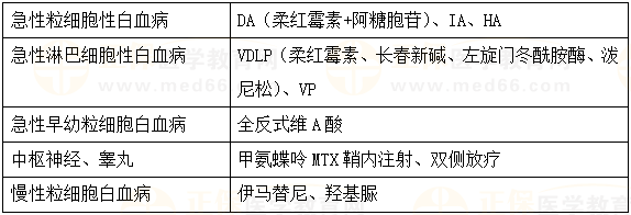 各型白血病治療對(duì)比-2023臨床執(zhí)業(yè)醫(yī)師考試易混淆考點(diǎn)鑒別對(duì)比表