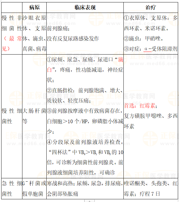 3種前列腺炎知識點匯總-2023臨床執(zhí)業(yè)醫(yī)師考試易混淆考點鑒別對比表