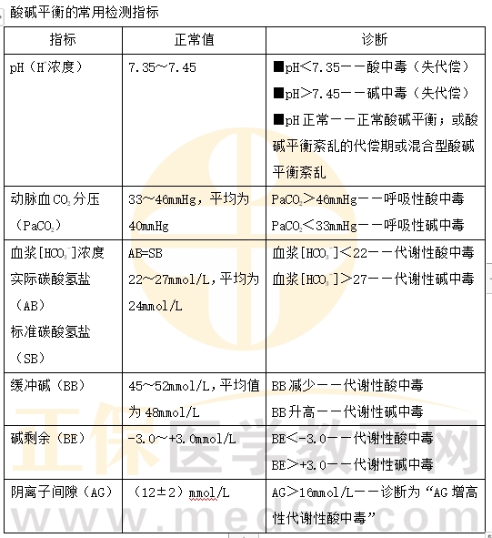 考點(diǎn):酸堿平衡的常用檢測(cè)指標(biāo)
