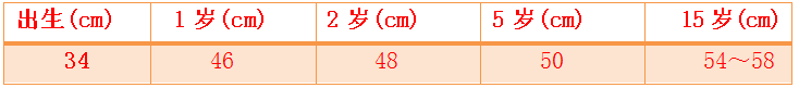 出生:約32cm,小于頭圍1~2cm;