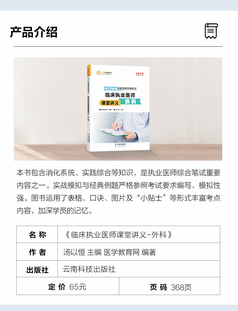 2022年夢想成真系列叢書《臨床執(zhí)業(yè)醫(yī)師課堂講義-外科》紙質(zhì)書介紹如下,立即購買>>