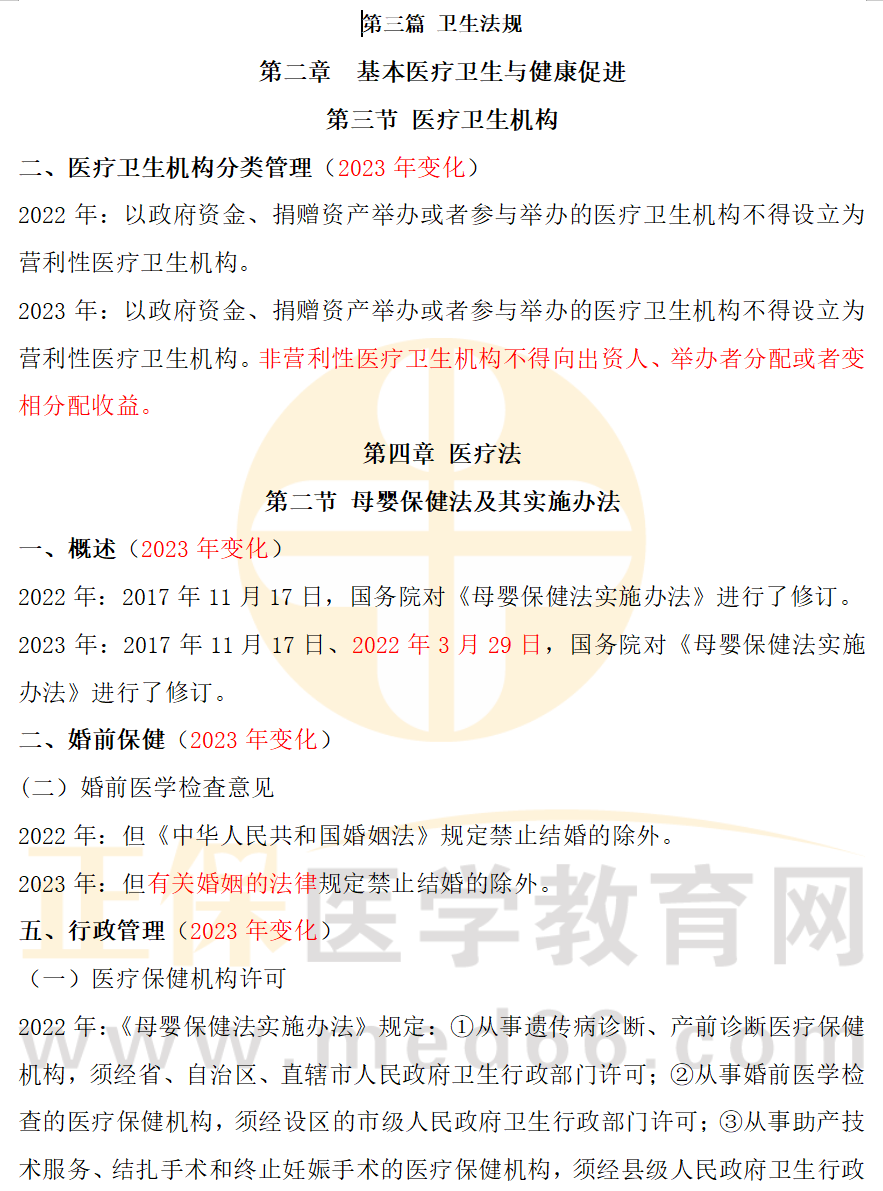 2023年臨床執(zhí)業(yè)醫(yī)師《衛(wèi)生法規(guī)》教材變化一覽!