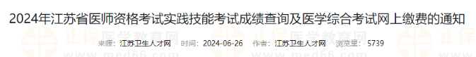 考生注意:江蘇省2024臨床執(zhí)業(yè)醫(yī)師實踐技能考試成績已公布!請相關考生及時登錄國家醫(yī)學考試網(wǎng)查看技能考試通過情況,同時按照要求盡快完成綜合筆試繳費。