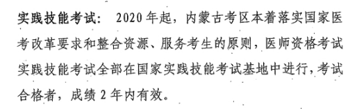 內(nèi)蒙古在2020年醫(yī)師資格考試實踐技能基地合并通知中提到,2020年醫(yī)師技能在基地考試 成績2年有效,具體如下: