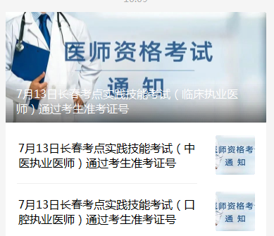 7月13日長春臨床執(zhí)業(yè)醫(yī)師實踐技能考試考生通過名單公示啦!